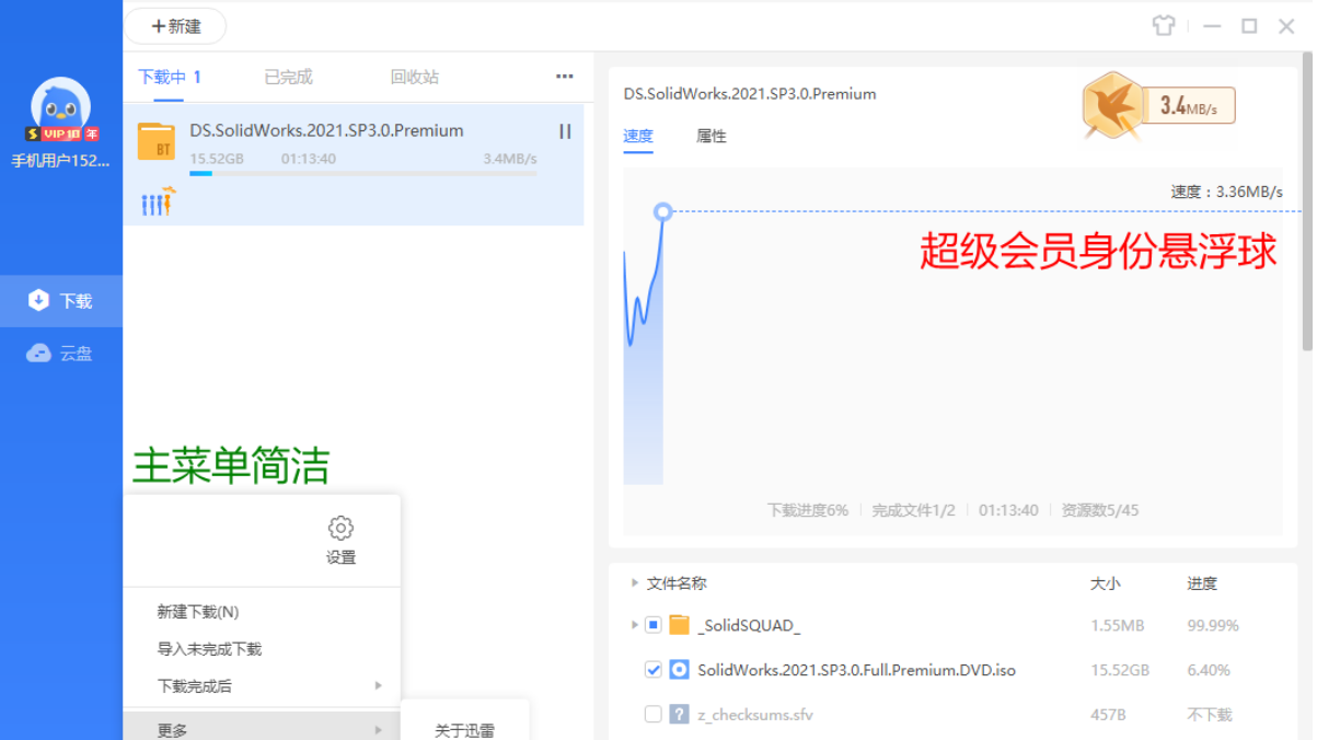 ThunderS是网友基于迅雷9+迅雷10深度定制版本,精简了外观,去除了不必要的功能,拿来下载刚好,体积精简到了6M左右。融合迅雷9界面+迅雷X内核(版本:10.1.34.800)。在使用轻量的旧版界面的同时,持平最新迅雷X的速度。压缩后仅5.8MB,而迅雷X原版安装包91.4MB!